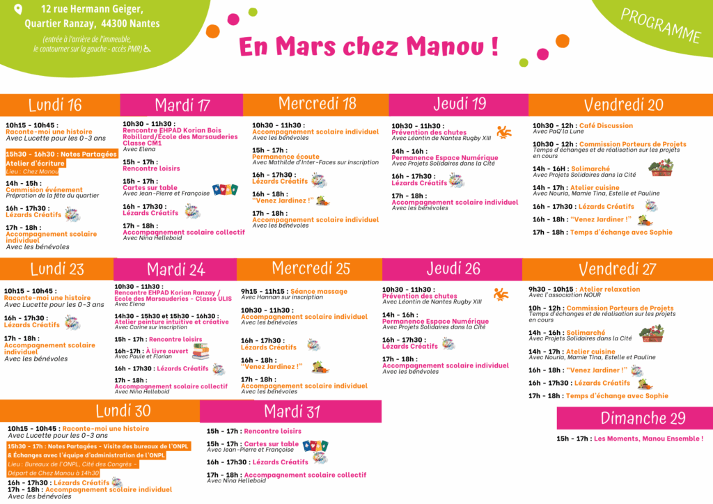 Programme de mars 2026 3 mars, 2026 Découvrez le programme de mars 2026 au sein du local de l’association.